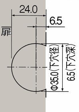 扉にあいている金具をはめ入れる穴の長さは26mmだと思います。代替金具の場合、長さは24mmと短いので、穴を彫り広げたりする作業も必要なく簡単に取り換えられると思います。