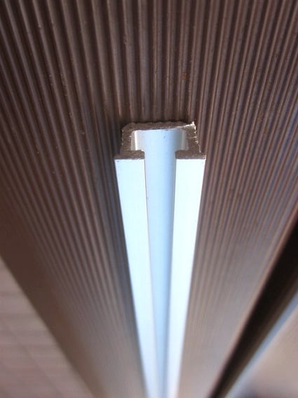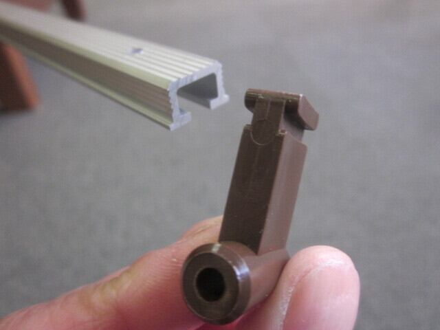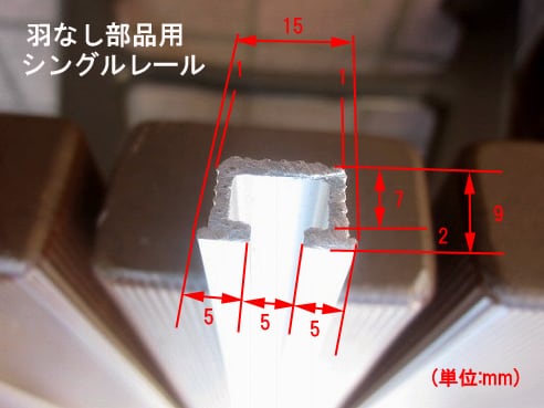 「ナショナル」「ミランコーポレーション」「永大産業」製の下駄箱に使用されている引き違い扉用のアルミ製のシングルレールです。家具天板に彫られた溝にシングルレールをはめ込んでネジで固定します。 レールをはめ込む溝のサイズは、幅13mm、深さ7mmほどです。引き違い戸の場合は、シングルレール2本必要です。